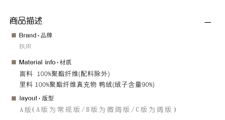 BUR男士薄羽绒